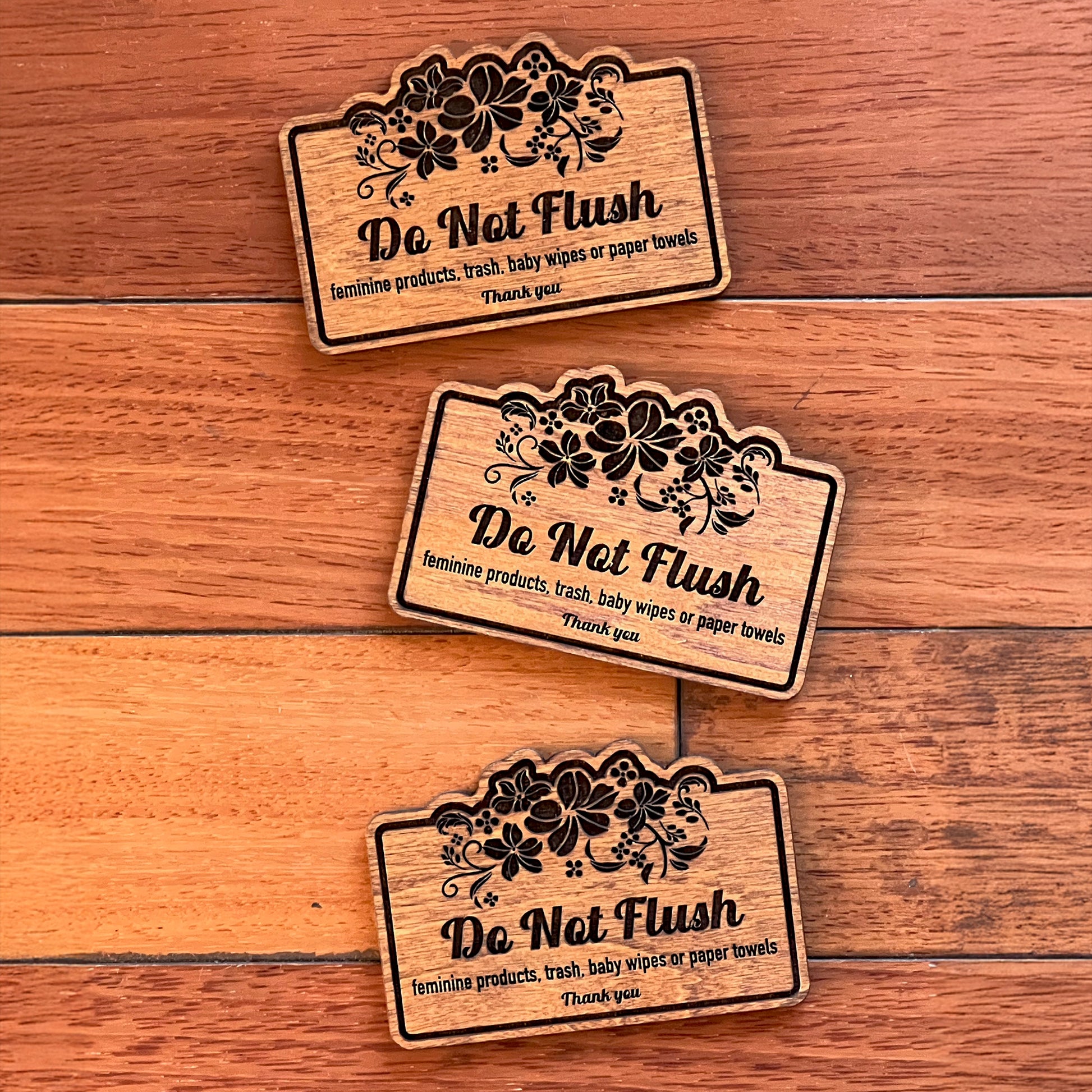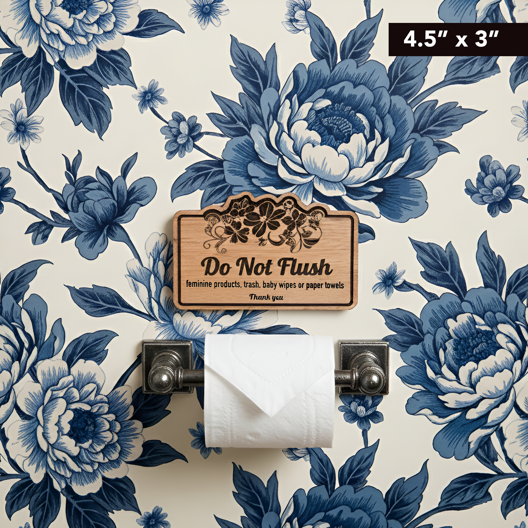 Keep the plumbing flowing and the "surprises" at bay. Nothing ruins a guest's stay (or a homeowner's weekend) like a backed-up toilet. Our Do Not Flush Graphic Sign is designed to gently—but clearly—remind guests and family members exactly what the sensitive plumbing can handle. Featuring a charming floral border and crisp laser engraving, this bathroom sign decor fits perfectly in farmhouse, modern, or traditional spaces.